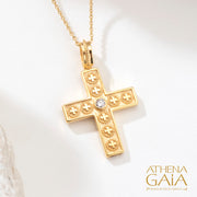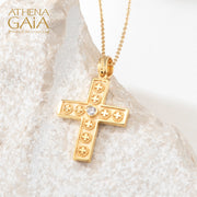 The Crosses Latin Cross is a beautiful representation of Byzantine style, featuring a central diamond and multiple Maltese crosses on each arm. Crafted in 18k gold, this cross is available in yellow, rose, or white, making it a versatile and elegant accessory for any occasion.