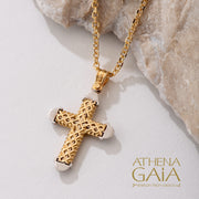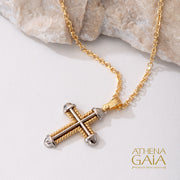 This 14k gold Latin cross features a unique two-toned design, with yellow and white gold creating a striking contrast. Perfect for baptisms, special events, or daily wear, this elegant and durable cross is a timeless symbol of faith.