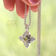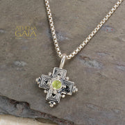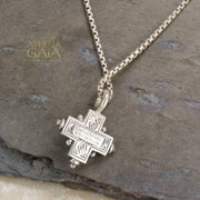 Rustic Silver Stone Cross (Small) - Sterling Silver - Greek Cross Necklace