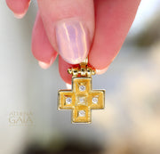 Shadow and Light 4 Diamond Greek Cross - 18k Gold - Orthodox Cross