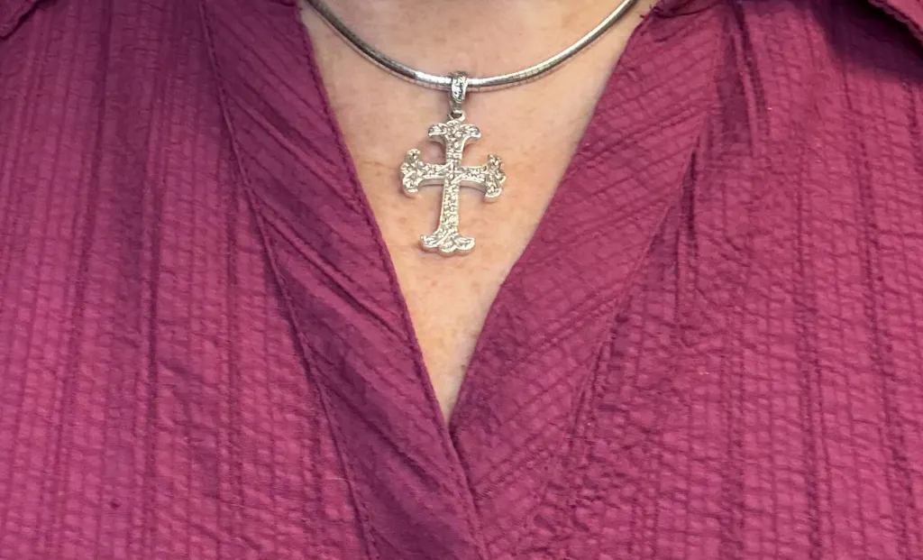 We also have a version of this cross with a ruby center: Silver Fleury Cross with Ruby