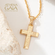Beveled Rough Western Cross - 14k Gold - Baptismal Cross