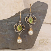 These Honey Drop Chandelier Earrings are crafted from 18k Gold and Sterling Silver with a drop Pearl and center gemstone of your choice. Graceful in movement, with an heirloom feel. These earrings were made to be loved forever, by this generation and the next.