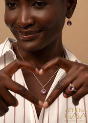 18k gold crowns, sterling silver bases, and a wave-shaped embrace of deep amethyst.