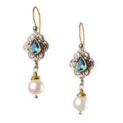 TearDrop Topaz Pearl Drop Chandelier Earrings - 18k Gold and Sterling Silver Earrings
