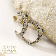 View full detailsThese Cyclades Square Earrings are crafted from 18k Gold and Sterling Silver with a center Gemstone of your choice. A truly timeless design that ad...