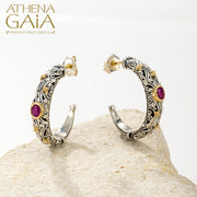 Kynthia Narrow Oval Stone Earrings - 18k Gold & Sterling Silver - Hoop Earrings