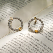 Single Oval Stone Medium Stud Cycle Earrings - 18k Gold & Sterling Silver Earrings