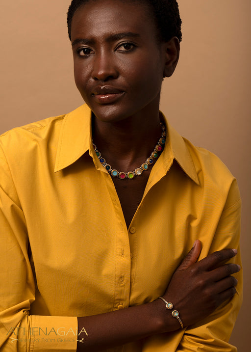 GerochristoThis beautifully detailed small Aegean Colors Circle Shaped Link Bracelet is crafted from 925 Sterling Silver, and Quartz Doublet stones. The color...