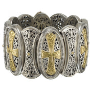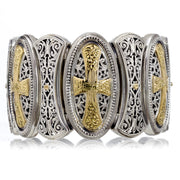 Gerochristo Crosses Wide Link Bracelet - 18k Gold & Sterling Silver Bracelet - Cuff Bracelet