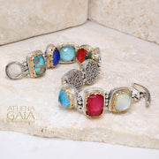 The color combination of a multi-colored bracelet will depend on the availability of the stones. Multi-colored bracelets take our normal delivery time, however please allow for additional time if you are requesting a bracelet with only one color as the designer may need more time to source the stones.