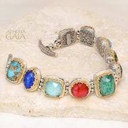 This beautifully detailed Pop Rocks Mixed Link Bracelet is crafted from 925 Sterling Silver and 18k Gold plating, with a mix of Quartz Doublet stones. A simple and classically elegant piece, it's perfect for everyday wear or to add a pop of color to more formal attire.