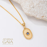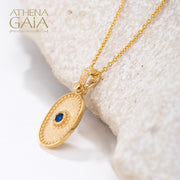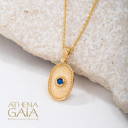 Oval Beaded Disc Pendant With Stone (Small) - 14k Gold