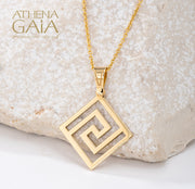 The Greek Key Pendant, crafted from 14k Gold with your choice of metal color, reimagines this timeless Greek motif with a contemporary edge. Delicate while also bold, this pendant is effortlessly wearable and perfect for elevating everyday outfits or adding a striking touch to formal looks.