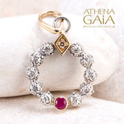 Single Round Stone Stud Cycle Pendant (Large) - 18k Gold & Sterling Silver Pendant