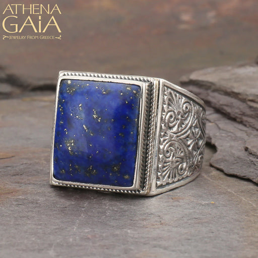 GerochristoPyramid Cut Lapis Ring - Sterling Silver Ring - Club Ring
