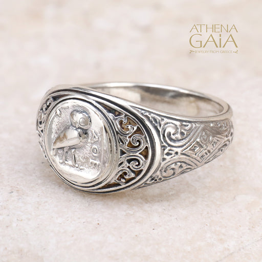Ancient Greek Owl Symbol Ring - Sterling Silver Ring - Signet Ring