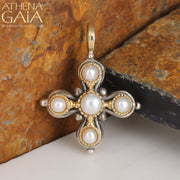 Aretousa Elevated Pearl Pomme Cross - 18k Gold and Sterling Silver - Cross Necklace