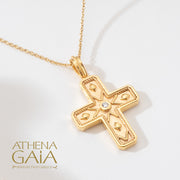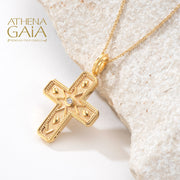View full detailsThe Regal Duo Prosopa Reversible Byzantine Flared Cross is crafted in 18k gold. The cross features stunning Byzantine details and is available in y...
