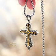 Golden Light Latin Cross - 18k Gold & Sterling Silver - Orthodox Cross Necklace