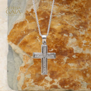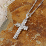 Rock Face Cross - 14k White Gold - Baptismal Cross (In-Stock)