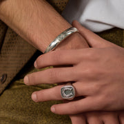 This Simplicity Rounded Filigree Bracelet is a beautiful unisex statement piece. Crafted from solid 925 Sterling Silver it features a high-detailed face and smooth comfortable to wear band. This is a beautiful bracelet that can be worn alone, or easily stacked with another. The cuff is one size, and fits the average 6-8 inch wrist.