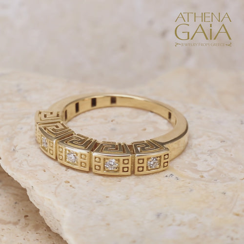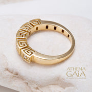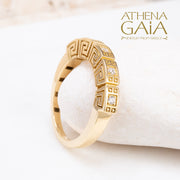 Mythical Greek Key Diamonds 5 Section Band Ring - 18k Gold Ring - Stackable Ring