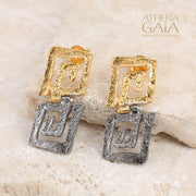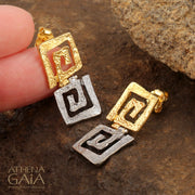 Double Greek Key Earrings - Gold Plated Sterling Silver Earrings
