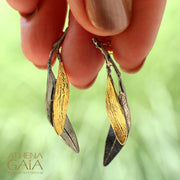 Dual Leaf Earrings - Gold Plated Sterling Silver Earrings