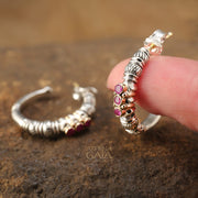 Triple Ruby Hoop Earrings - 18k Gold & Sterling Silver Earrings
