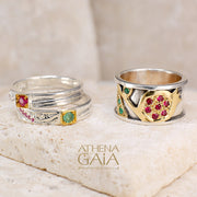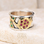 Pomegranate Ring - 18k Gold & Sterling Silver Ring - Cigar Band Ring