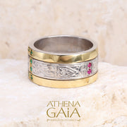 Synergy Double Row Gold Field Ring - 18k Gold & Sterling Silver Ring - Cigar Band Ring
