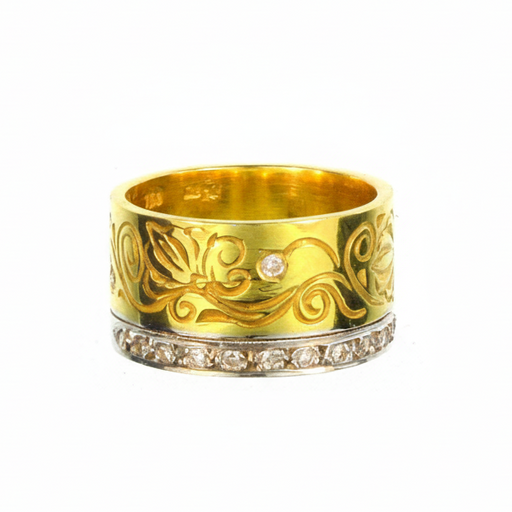 Flower Vine Diamond Ring - 18k Gold Ring - Cigar Band Ring