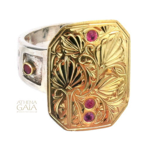 View full detailsRuby and Emerald Anthemion Long Ring - 18k Gold Ring - Cocktail Ring