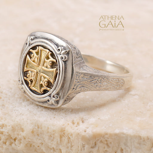 Alexander Cross Ring - 18k Gold & Sterling Silver Ring - Signet Ring
