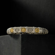 Alexander Shield Bracelet - 18k Gold and Sterling Silver Bracelet - Hinged Bangle Bracelet