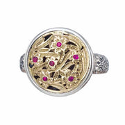 Harmony Gyros with Rubies Ring - 18k Gold & Sterling Silver Ring - Signet Ring