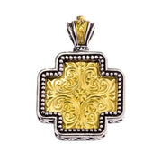 Etched Squared Greek Cross - Gold Plated Sterling Silver - Orthodox Cross Necklace