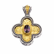 Etched Rounded Greek Cross - Gold Plated Sterling Silver with Center Stone - Orthodox Cross Necklace