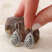 Garden Shadows Filigree Drop Earrings - Sterling Silver - French Wire Earrings