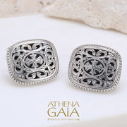 View full detailsThese Cyclades Square Earrings are crafted from 18k Gold and Sterling Silver with a center Gemstone of your choice. A truly timeless design that ad...