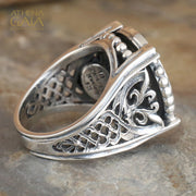 Helios Crown Ring - Sterling Silver Ring - Signet Ring