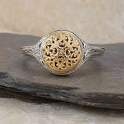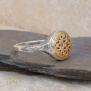 Mediterranean Round Pinky Ring - 18k Gold & Sterling Silver Ring - Signet Ring