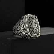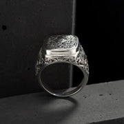 This classic Mediterranean Silver Rectangle Cushion Ring is crafted from 925 Sterling Silver with an intricately detailed face and delicate filigree side design. This is an easy to wear unisex ring, with a comfortable tapered back, that adds instant sophistication to easy breezy casual or more formal attire.