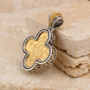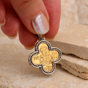 Mother and Child Rounded Greek Cross - Gold Plated Sterling Silver - Orthodox Cross Necklace