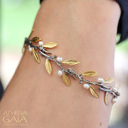 Pearl Olive Bracelet - Gold Plated Sterling Silver Bracelet - Cuff Bracelet