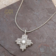 Rustic Silver Stone Cross (Large) - Sterling Silver - Greek Cross Necklace