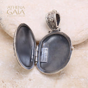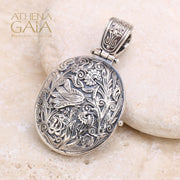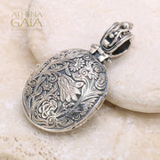 Wild Flower Silver Oval Locket Pendant - Sterling Silver Pendant