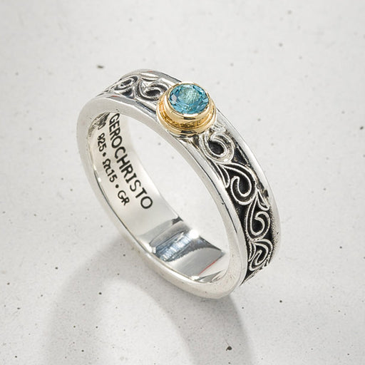 GerochristoThe classic Mediterranean Ring is crafted from 18k Gold and Sterling Silver with a center gemstone of your choice. This is an easy to wear ring wit...
