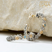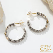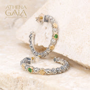 Wild Flowers Single Round Stone Medium Earrings - 18k Gold & Sterling Silver - Hoop Earrings